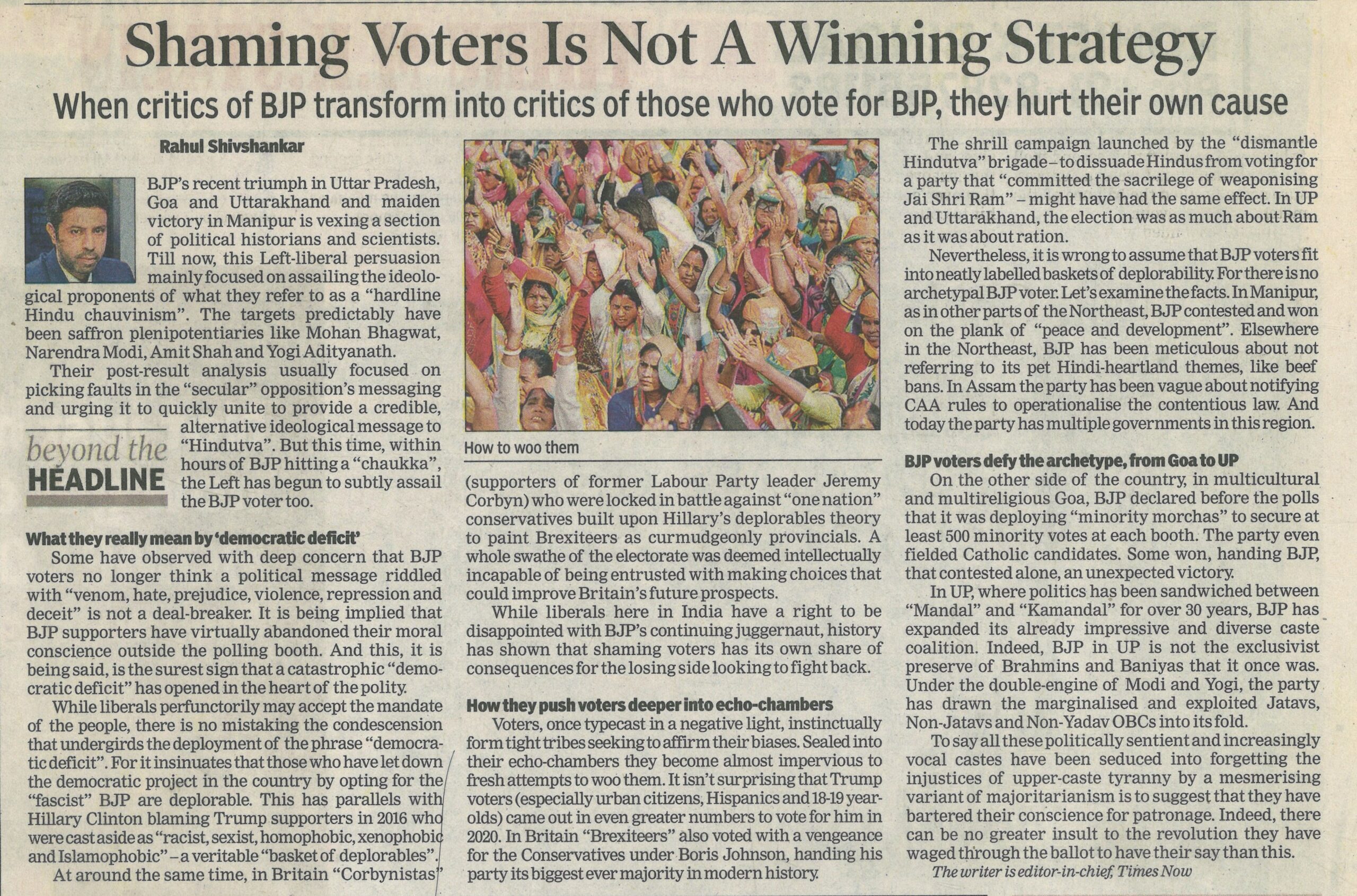 BJP’s recent triumph in Uttar Pradesh, Goa and Uttarakhand and maiden victory in Manipur is vexing a section of political historians and scientists. Till now, this Left-liberal persuasion mainly focused on assailing the ideological proponents of what they refer to as a “hardline Hindu chauvinism”. The targets predictably have been saffron plenipotentiaries like Mohan Bhagwat, Narendra Modi, Amit Shah and Yogi Adityanath.