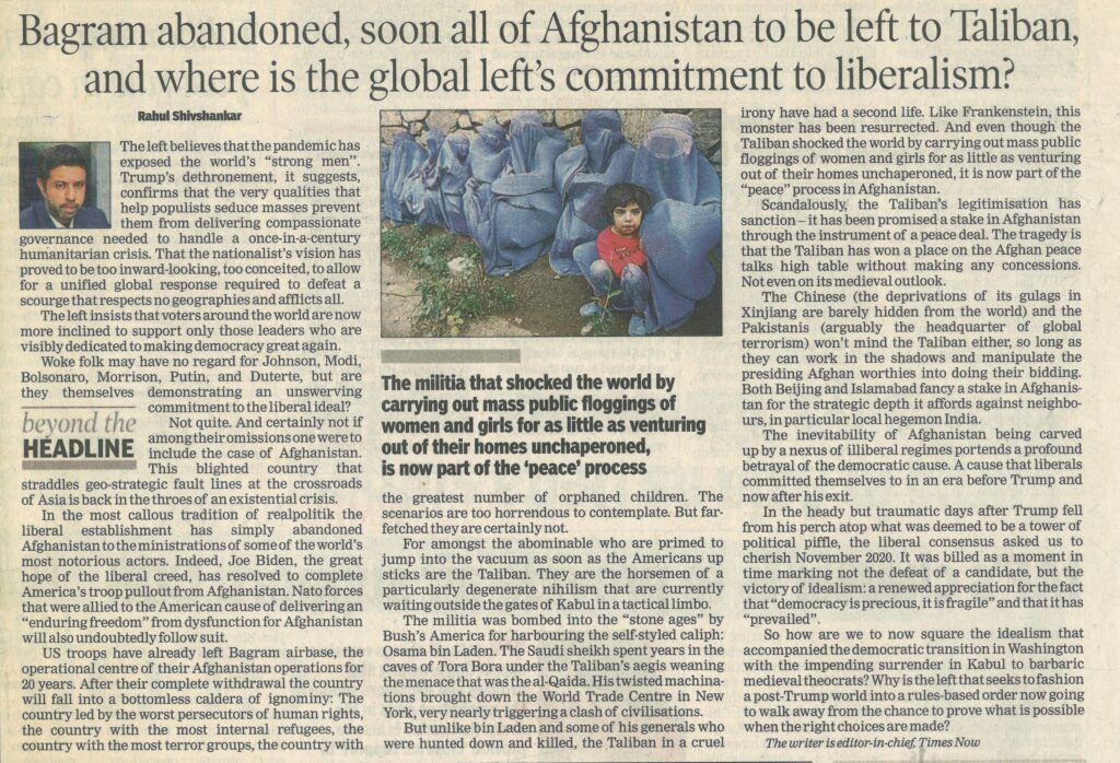 Read MoreBagram abandoned, soon all of Afghanistan to be left to Taliban, and where is the global left’s commitment to liberalism?