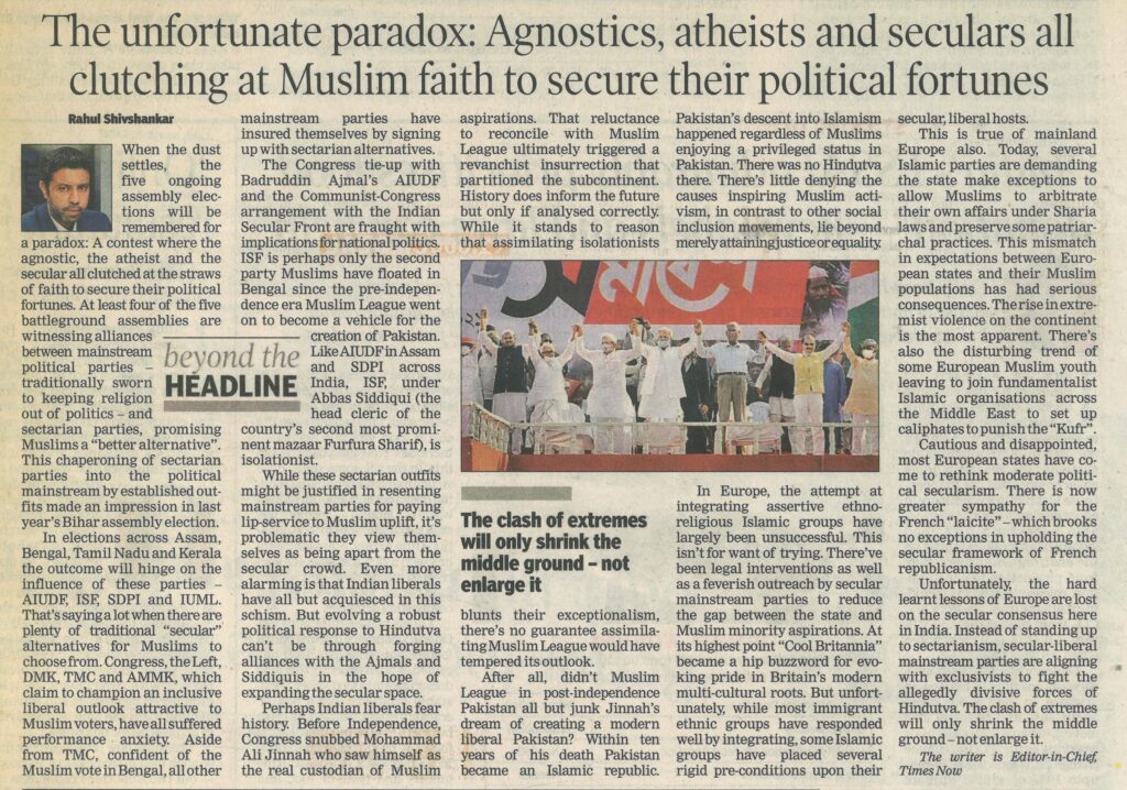When the dust settles, the five ongoing assembly elections will be remembered for a paradox: A contest where the agnostic, the atheist and the secular all clutched at the straws of faith to secure their political fortunes. At least four of the five battleground assemblies are witnessing alliances between mainstream political parties – traditionally sworn […]