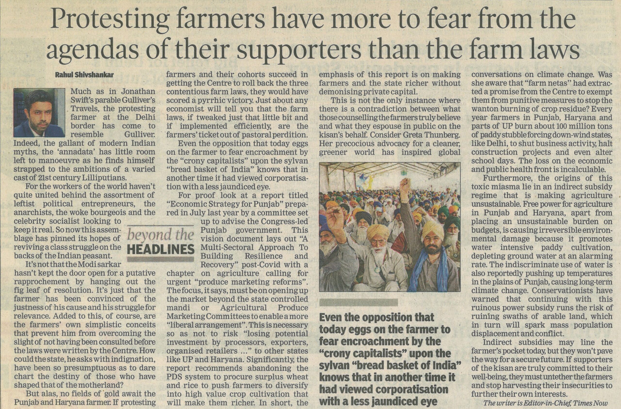 Read MoreProtesting farmers have more to fear from the agendas of their supporters than the farm laws
