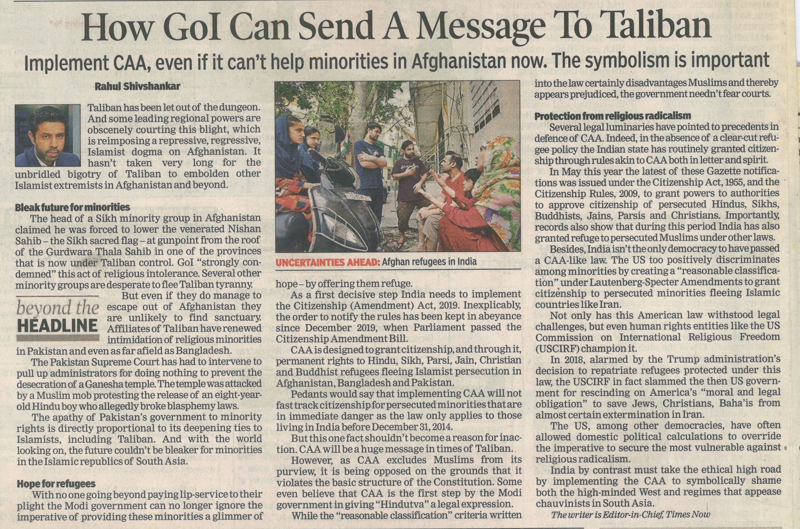 But this one fact shouldn’t become a reason for inaction. CAA will be a huge message in times of Taliban.