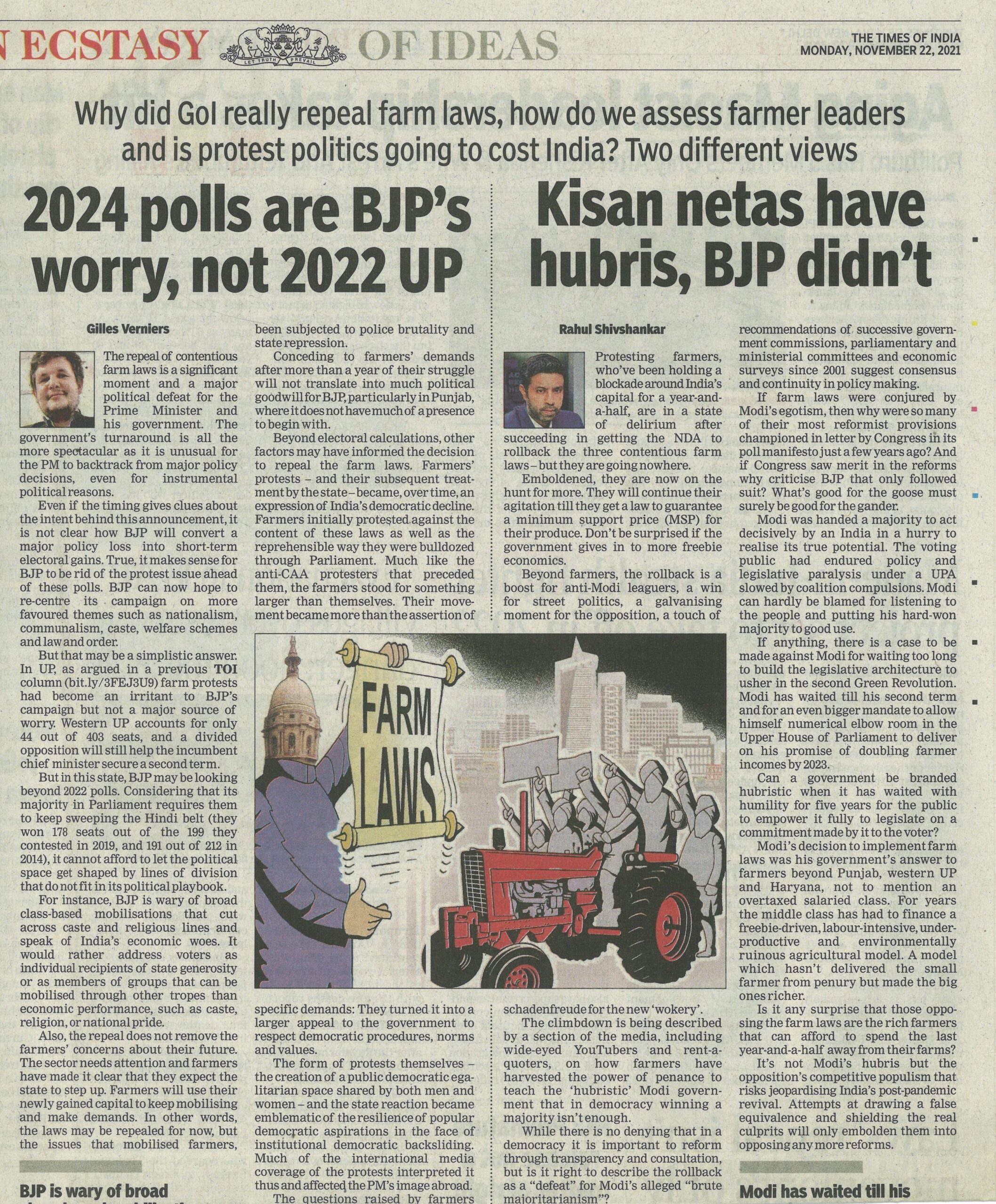 Emboldened, they are now on the hunt for more. They will continue their agitation till they get a law to guarantee a minimum support price (MSP) for their produce. Don’t be surprised if the government gives in to more freebie economics.