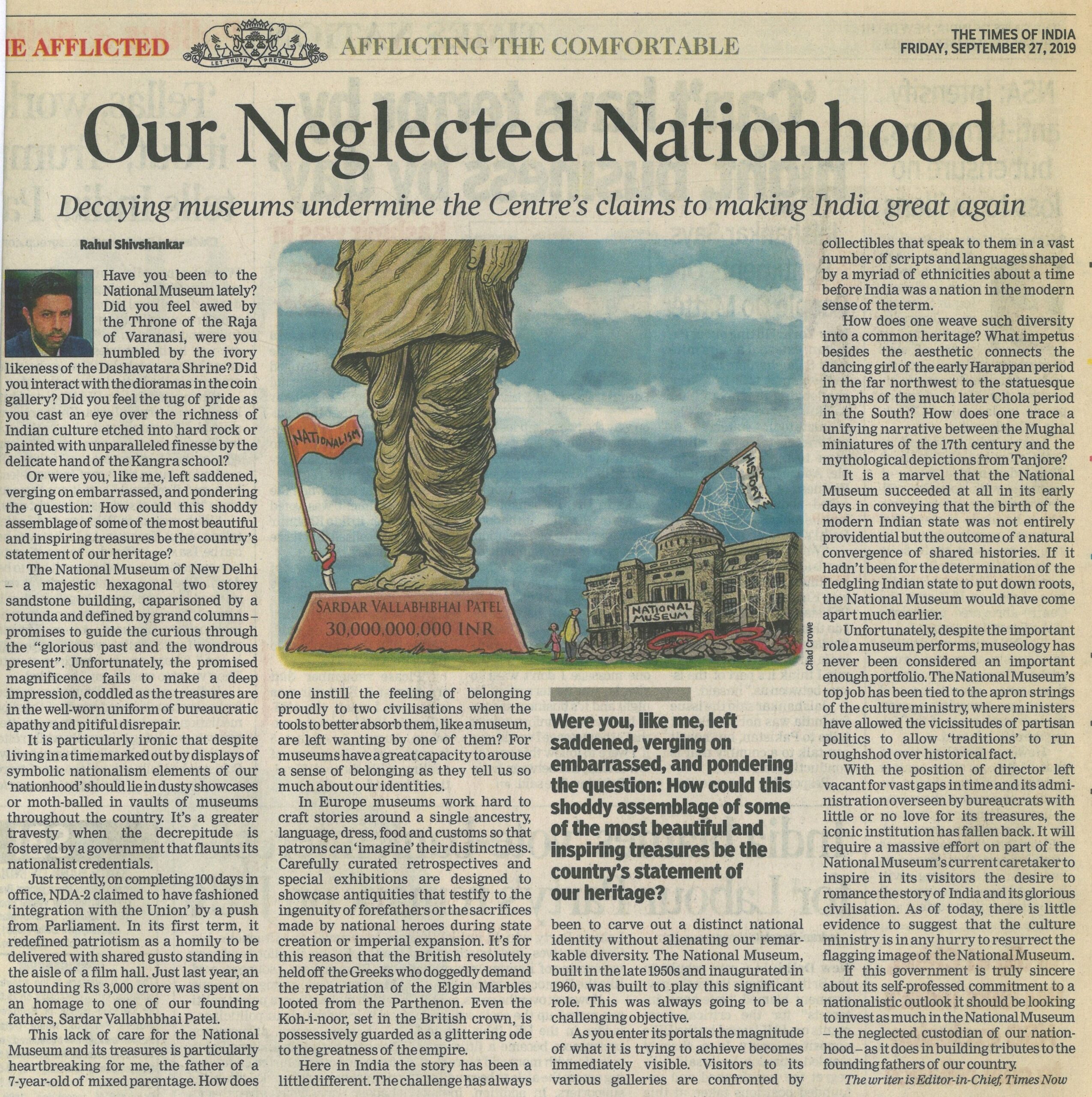 It is particularly ironic that despite living in a time marked out by displays of symbolic nationalism elements of our ‘nationhood’ should lie in dusty showcases or moth-balled in vaults of museums throughout the country. It’s a greater travesty when the decrepitude is fostered by a government that flaunts its nationalist credentials.