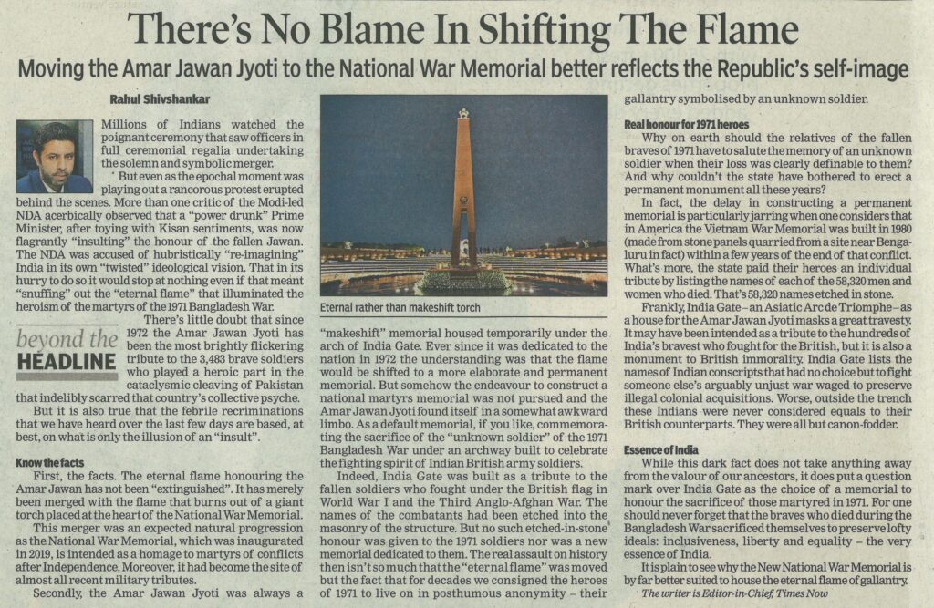 Read MoreThere’s no blame in shifting the flame: Moving the Amar Jawan Jyoti to the National War Memorial better reflects the Republic’s self-image