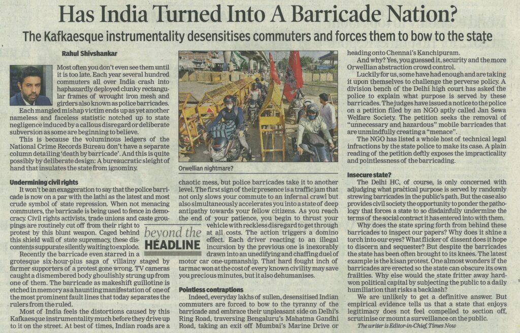 Read MoreHas India turned into a barricade nation? The Kafkaesque instrumentality desensitises commuters and forces them to bow to the state