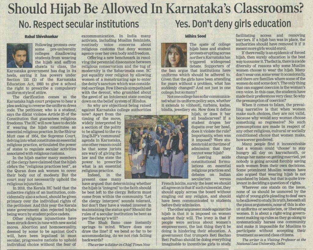 Read MoreShould Hijab be allowed in Karnataka’s classrooms? No. Respect secular institutions