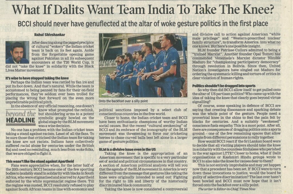 Read MoreWhat if Dalits want Team India to take the knee? BCCI should never have genuflected at the altar of woke gesture politics in the first place