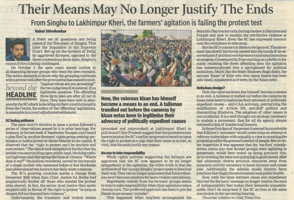 Read MoreTheir means may no longer justify the ends: From Singhu to Lakhimpur Kheri, the farmers’ agitation is failing the protest test