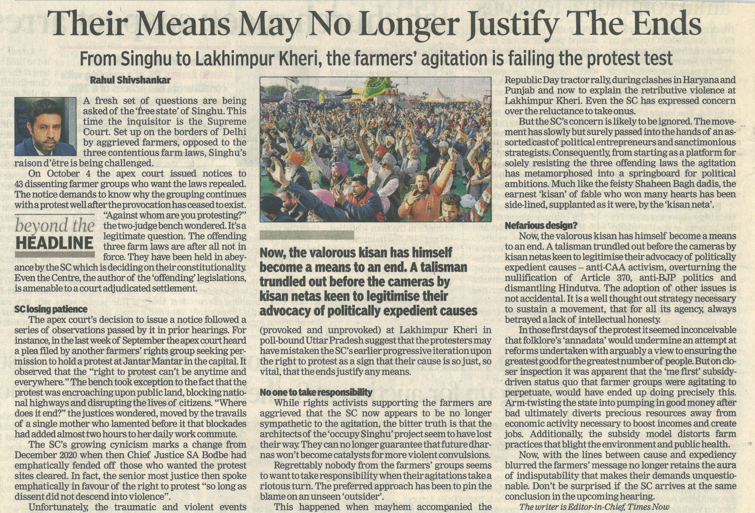 A fresh set of questions are being asked of the ‘free state’ of Singhu. This time the inquisitor is the Supreme Court. Set up on the borders of Delhi by aggrieved farmers, opposed to the three contentious farm laws, Singhu’s raison d’être is being challenged.