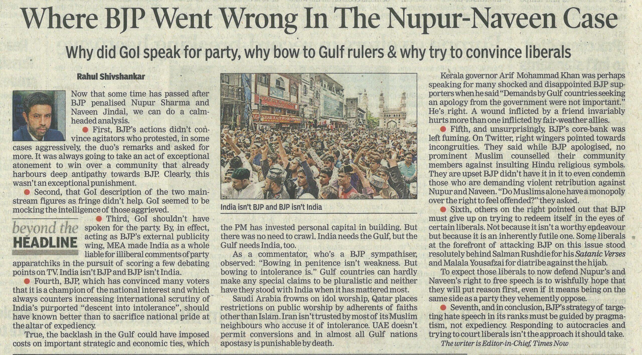 Now that some time has passed after BJP penalised Nupur Sharma and Naveen Jindal, we can do a calm-headed analysis.